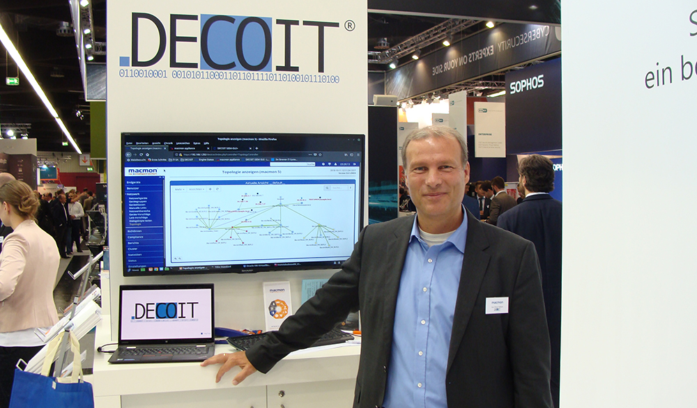 Die DECOIT® GmbH nahm als Technologiepartner an dem Stand der macmon secure GmbH an der Sicherheitsmesse teil. Dabei war die Zielsetzung, die Lösung Network Access Control (NAC) von macmon und eigene IT-Sicherheitslösungen zu präsentieren. Hauptfokus bestand darin die Entwicklungsresultate des im April abgeschlossenen Projekts CLEARER zu zeigen, welches als Erweiterung von NAC-Systemen wie macmon konzipiert wurde. Während eine NAC-Lösung Wert darauf legt, alle Endgeräte im eigenen Netz zu kennen und unbekannte Geräte auszuschließen, legt CLEARER den Fokus darauf das Sicherheitsniveau eines Unternehmens zu erfassen und darzustellen. Dadurch ergänzen sich beide Lösungen sehr gut gegenseitig.